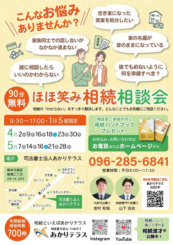 【4・5月相談会】ほほ笑み相続個別無料相談会【相続・遺言・空き家・認知症】
